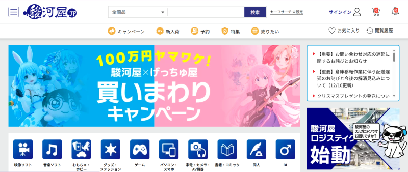 1. 駿河屋:マケプレ福袋の在庫が豊富!宝探し感覚で探せる